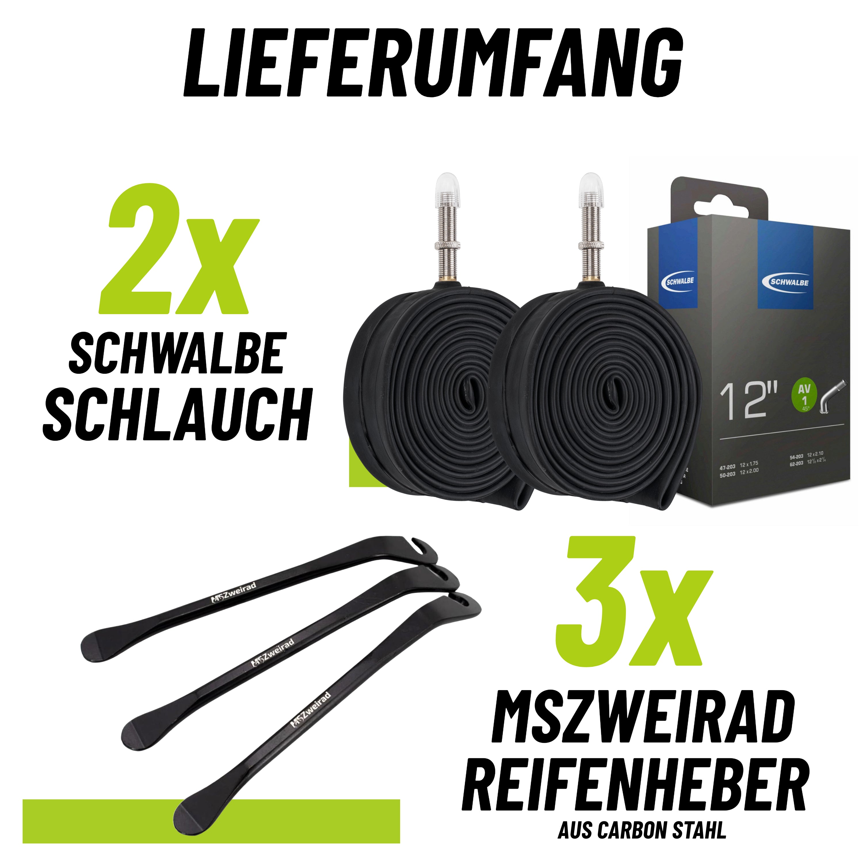 2x Schwalbe Fahrradschlauch AV 1 Gerade 47/62-203 EK AV 40 mm mit Reifenheber