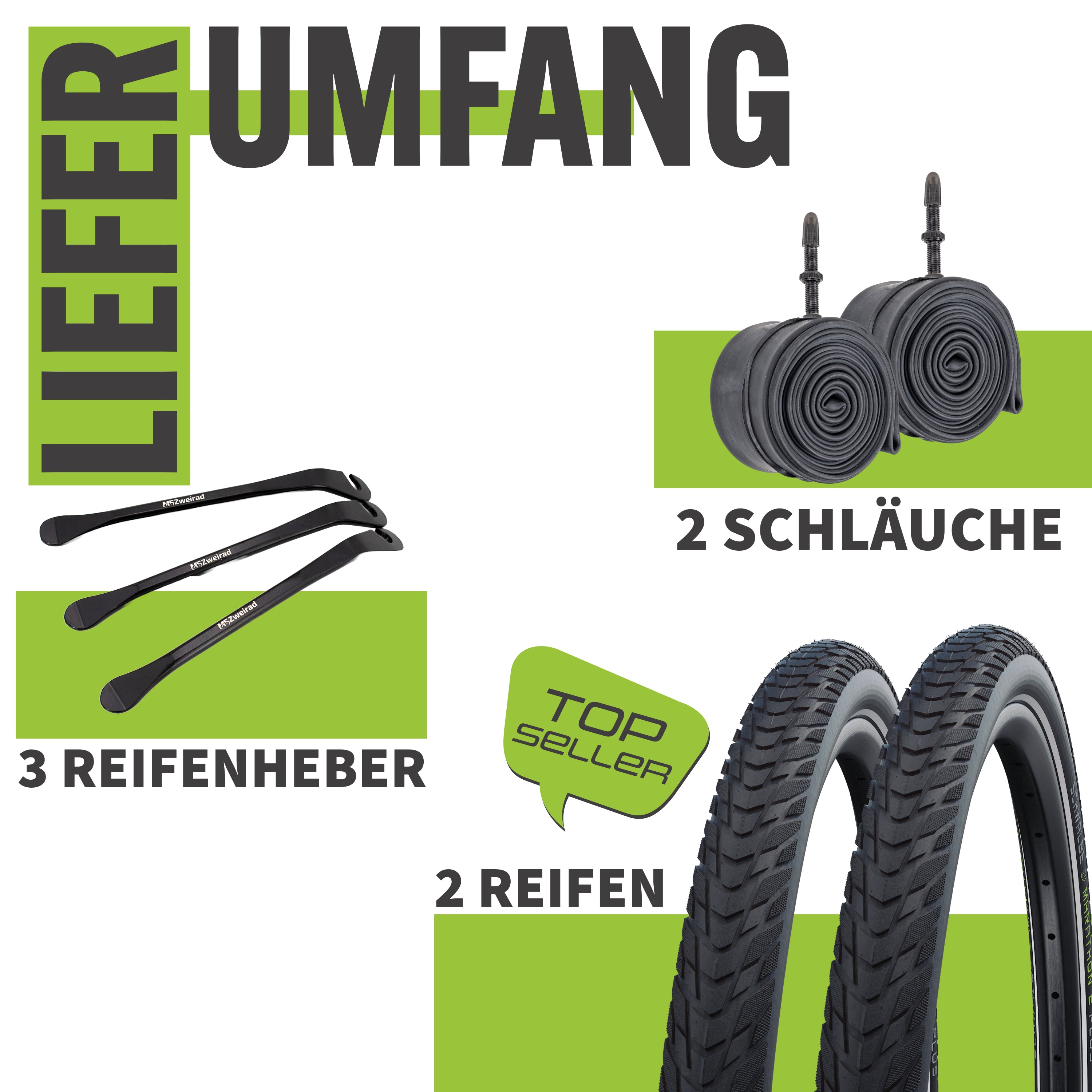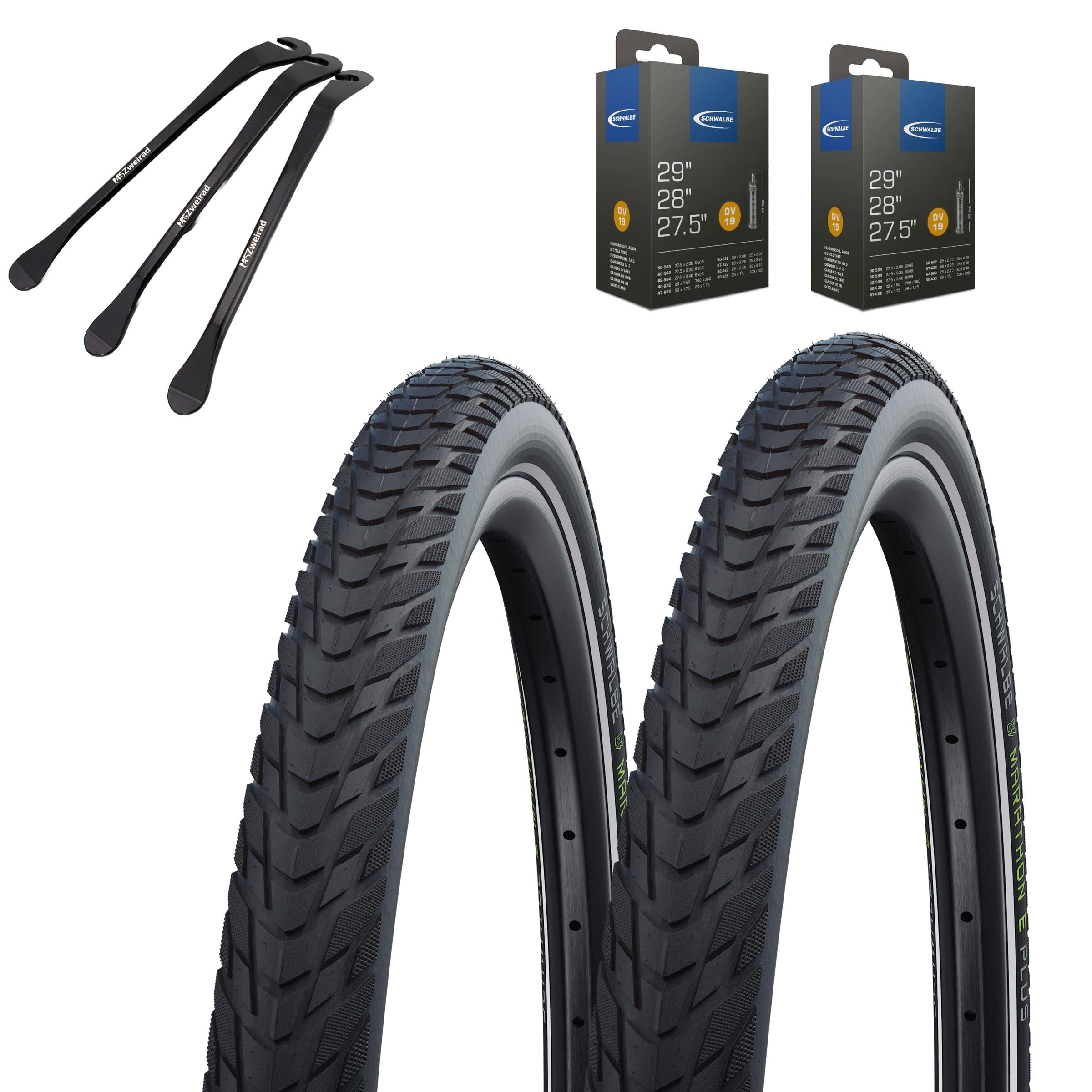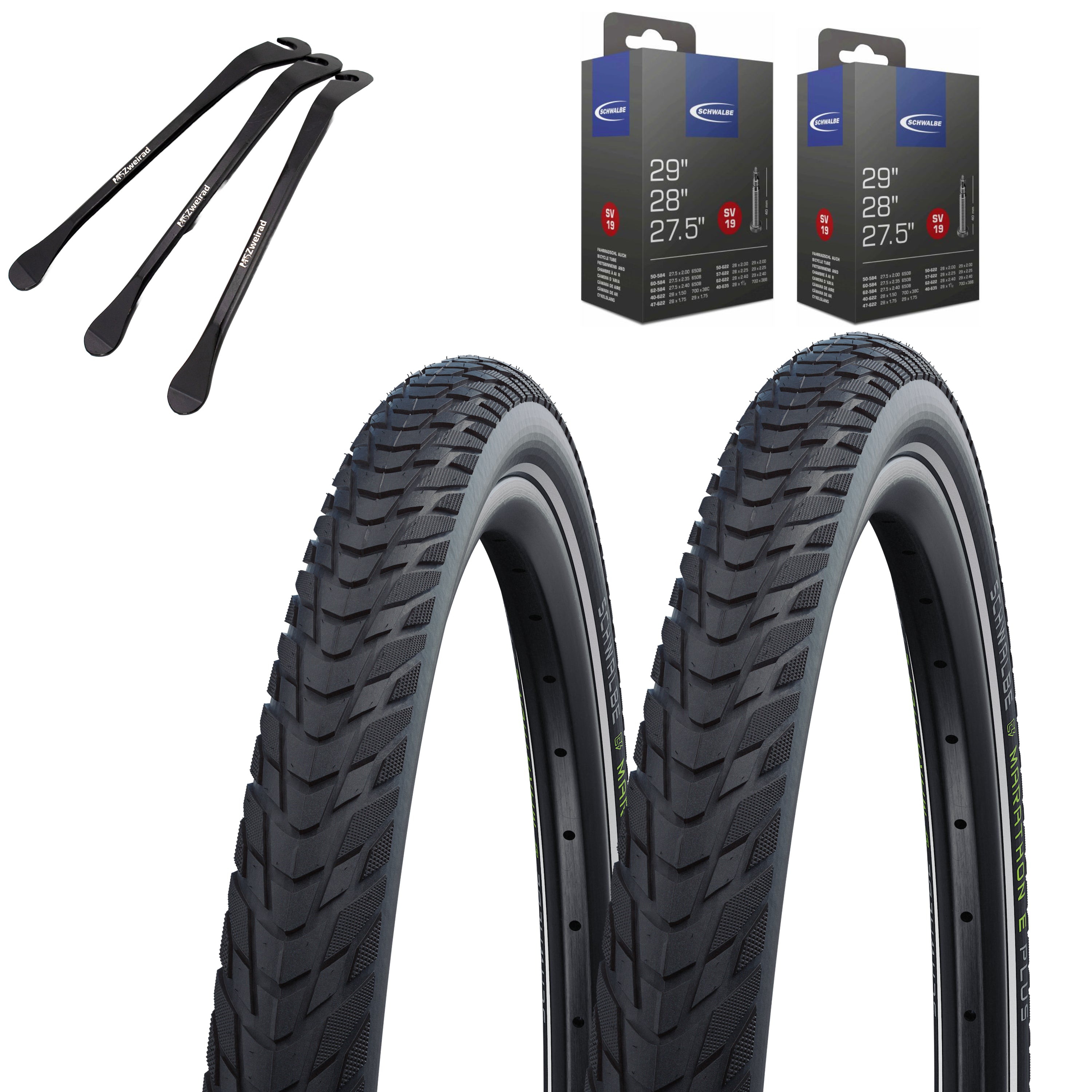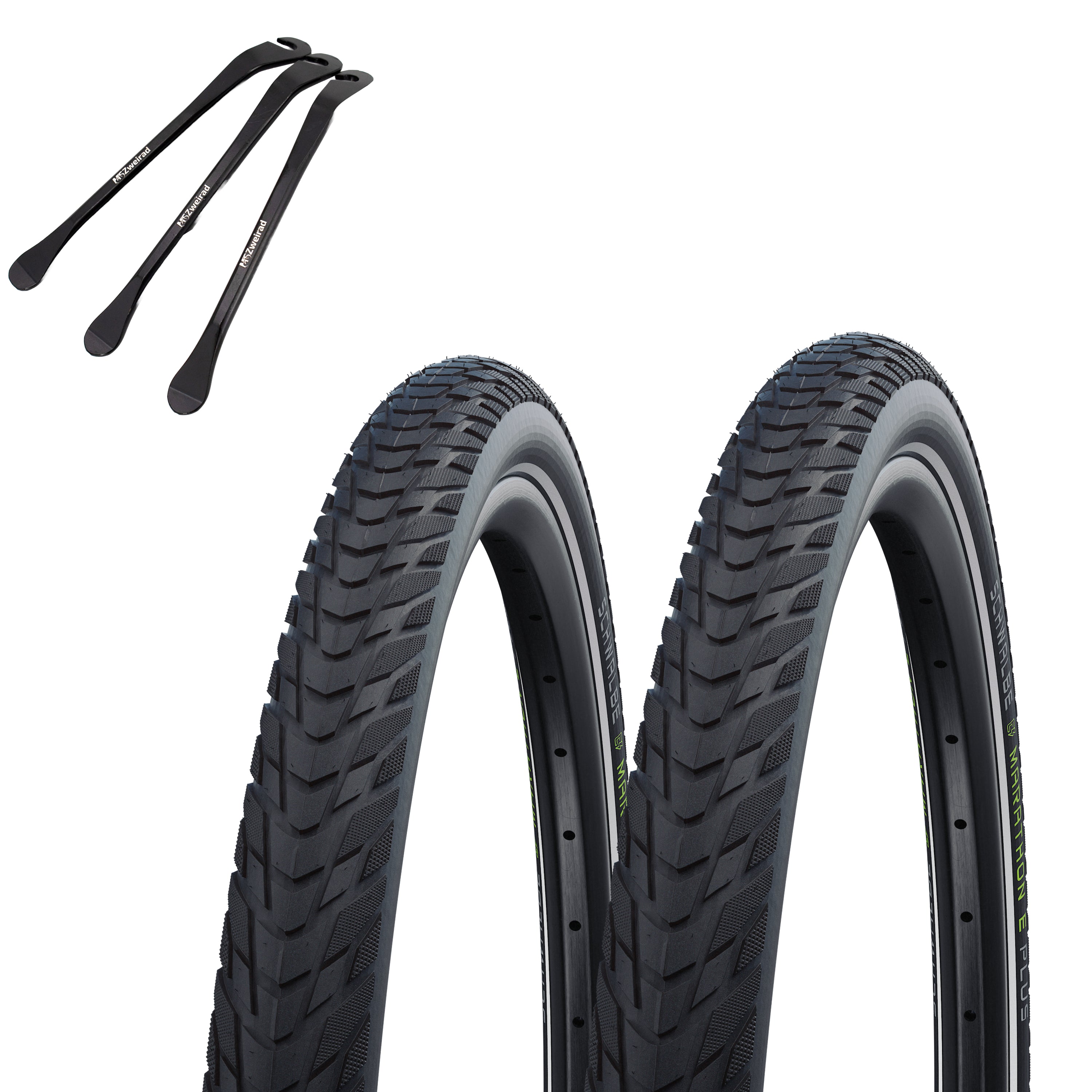 Die Reifen sind in verschiedenen Ventiloptionen (AV, SV oder DV) erhältlich, wodurch sie mit zahlreichen Fahrradtypen und E-Bikes kompatibel sind. Diese Vielseitigkeit und die einfache Montage machen die Marathon E-Plus Reifen zur idealen Wahl. Im Lieferumfang sind zudem praktische Reifenheber enthalten, um den Reifenwechsel noch unkomplizierter zu gestalten.