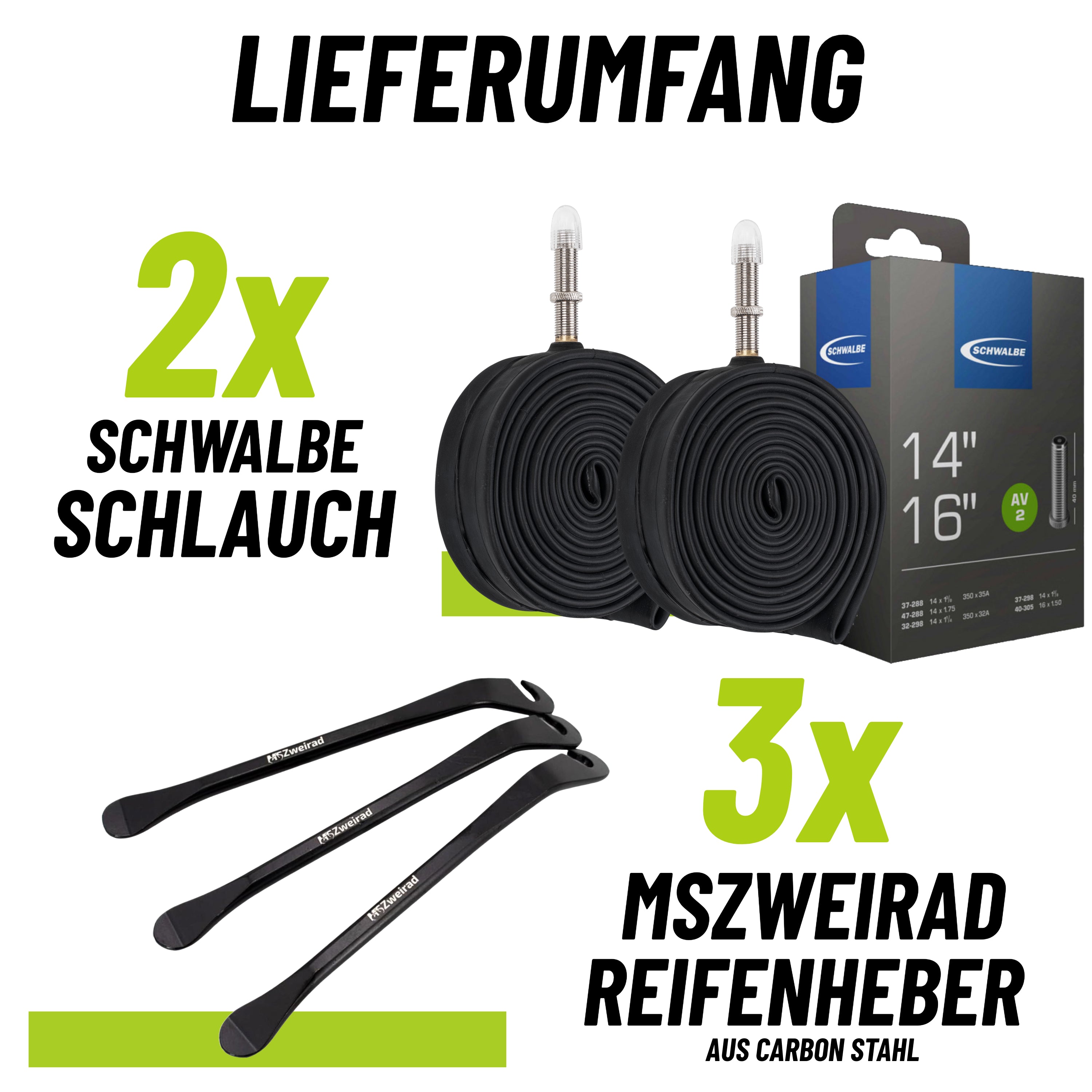 Für das ultimative Bike-Erlebnis ist das SCHWALBE Set bestehend aus 2x Fahrrad Schlauch 14 16 Zoll inklusive 3 Reifenheber perfekt!