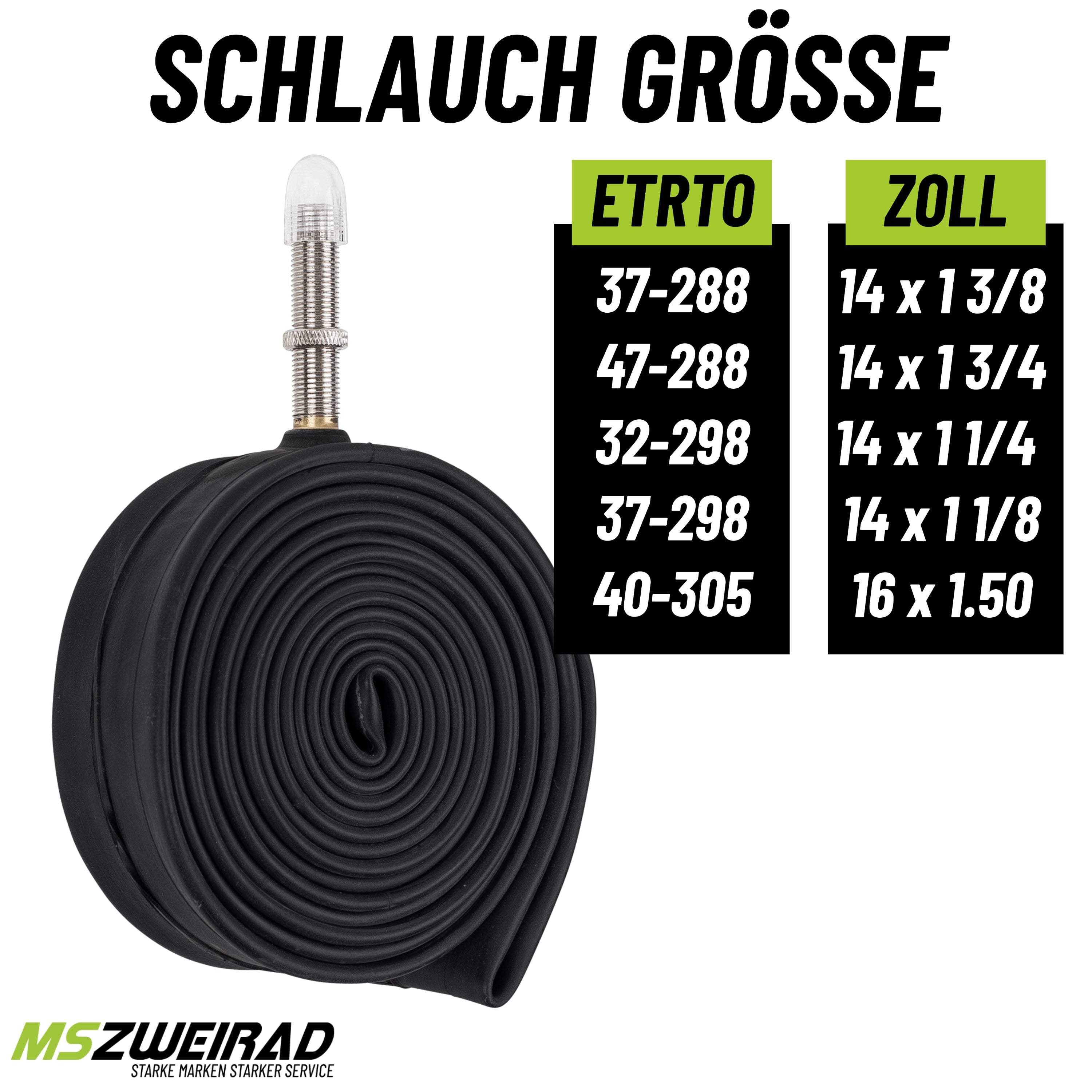 Diese Schlauchgröße wurde speziell für Laufradgrößen von 14 16 Zoll entwickelt, mit einer ETRTO-Größe von 32/47-288/305. Sichern Sie sich noch heute Ihren MTB Schlauch 14-16 Zoll für ein stressfreies Bikerlebnis!