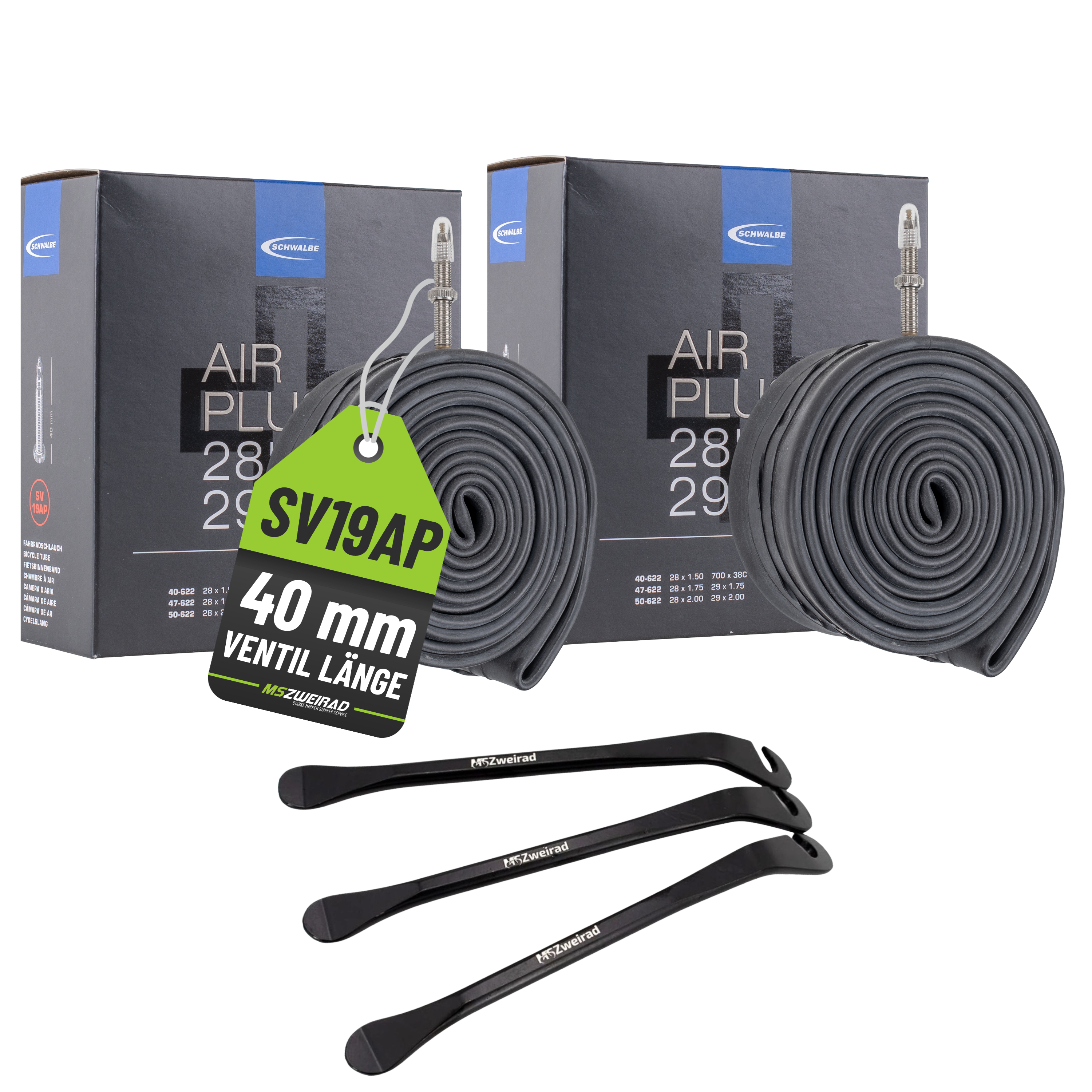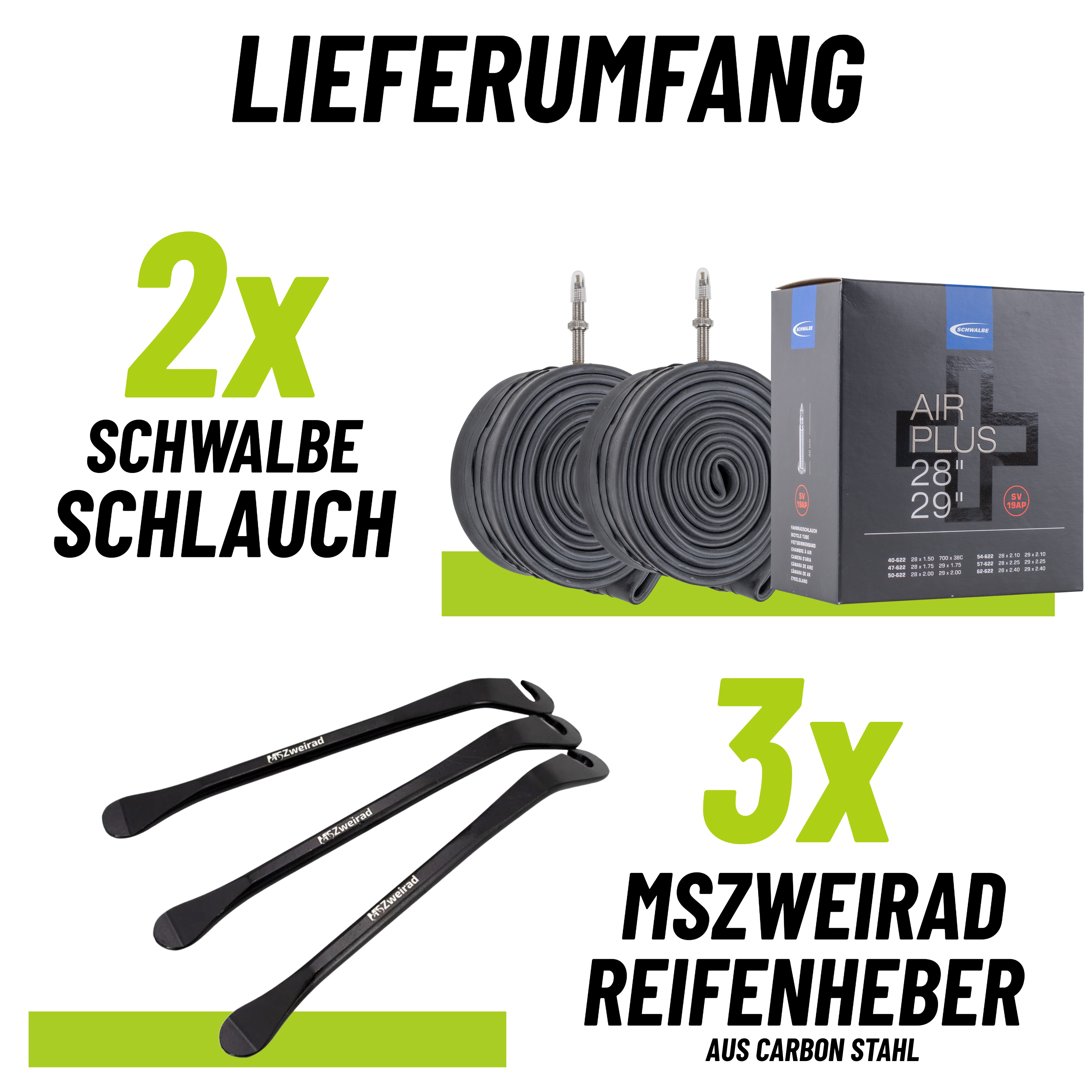 Für das ultimative Bike-Erlebnis ist das SCHWALBE Set bestehend aus zwei Schläuchen inklusive 3 Reifenheber perfekt! Diese robusten Schläuche sind für eine lange Lebensdauer ausgelegt. Mit einer Wandstärke, die beeindruckende 70 Prozent höher ist als bei Standardschläuchen, müssen Sie sich keine Sorgen machen, dass sie platzen oder der Luftdruck schnell nachlässt. Die Schläuche sind mit einem hohen Anteil an reinem Butylkautschuk gefertigt und sorgen für zusätzliche Festigkeit und lang anhaltenden Luftdruck. Diese Schlauchgröße wurde speziell für Laufradgrößen zwischen 28 und 29 entwickelt, mit einer ETRTO-Größe von 40/62-622. Sichern Sie sich noch heute Ihren Schlauch für ein stressfreies Bikerlebnis!