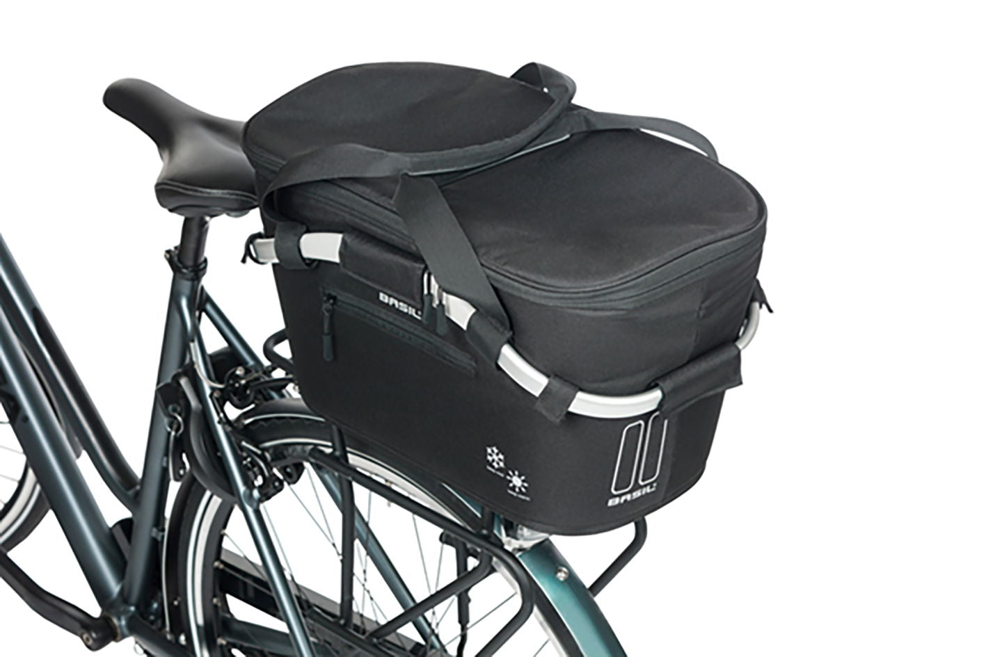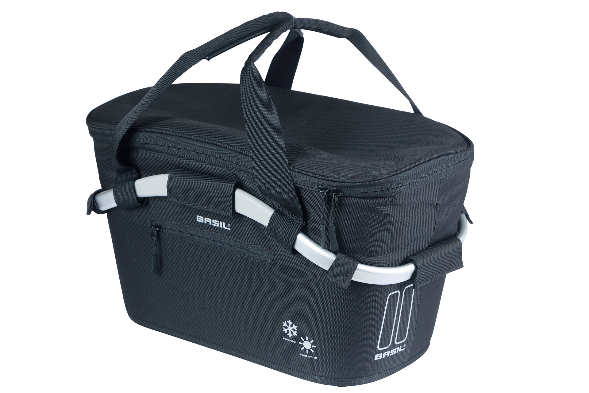 Der Basil HR-Basket Carry All MIK 2.0 ist ein leichter, abnehmbarer Fahrradkorb mit isolierendem Innenfutter – ideal für den Transport von warmen oder kalten Speisen. Mit 18 Litern Volumen, Deckel mit Reißverschluss, Tragegriffen und Außentasche bietet er viel Stauraum. Reflektierende Details sorgen für Sichtbarkeit. Inklusive MIK Adapterplatte 2.0 für einfache Montage am MIK-Systemträger. Perfekt für Picknicks oder Radtouren mit Stil und Funktionalität.