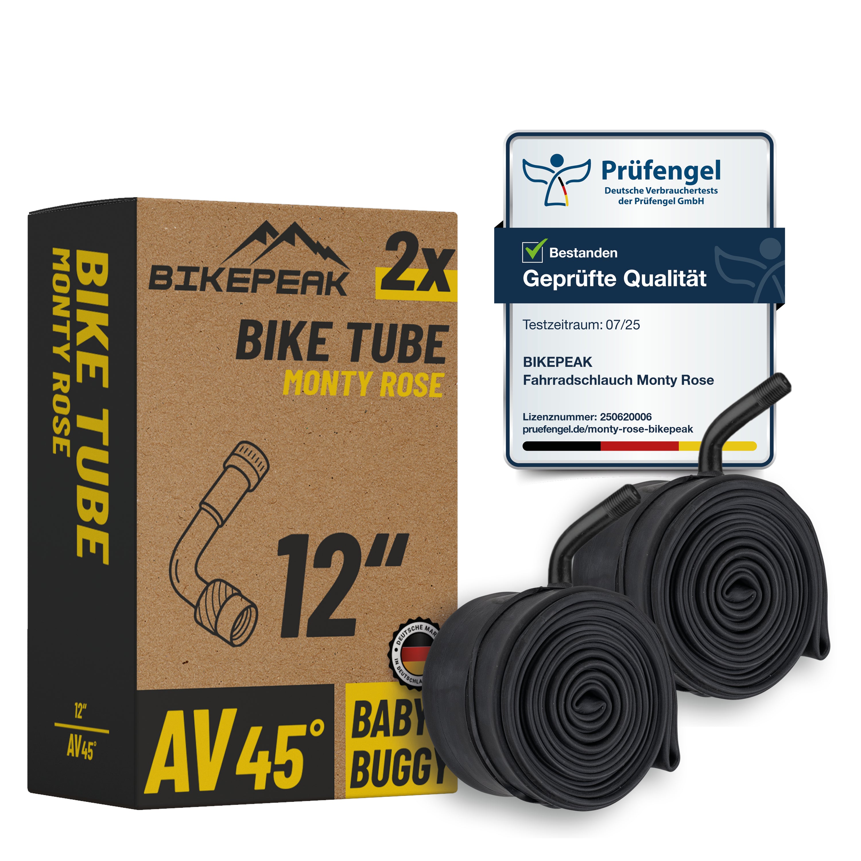 BikePeak Fahrradschlauch Monty Rose 12 Zoll AV 45° 47/62-203 - 2er Set Schlauch