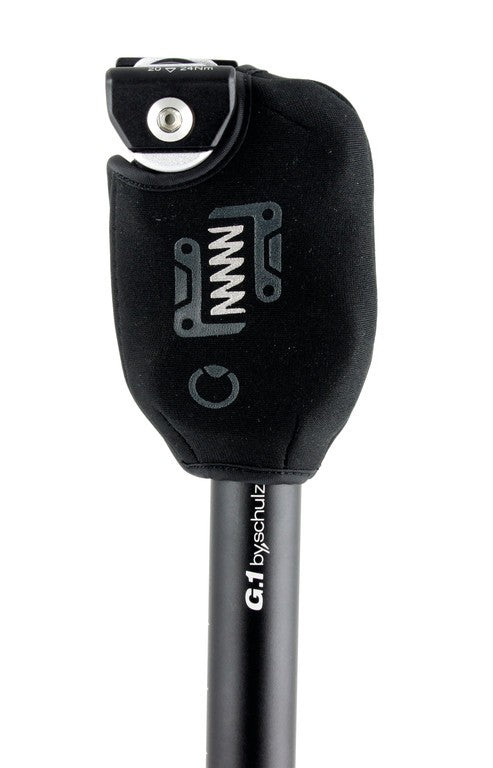 Die Schutzhülle für die by,schulz gefederten G.Serie-Sattelstützen covert den Parallellogramm-Federmechanismus vor Feuchtigkeit und Schmutz. So bleibt die einwandfreie Funktion der Federung gewährleistet. Die Schutzhülle ist aus hochwertigem Neopren gefertigt, Sie dient auch als Fingerschutz für Kinderhände (bei Benutzung mit Kindersitz).
