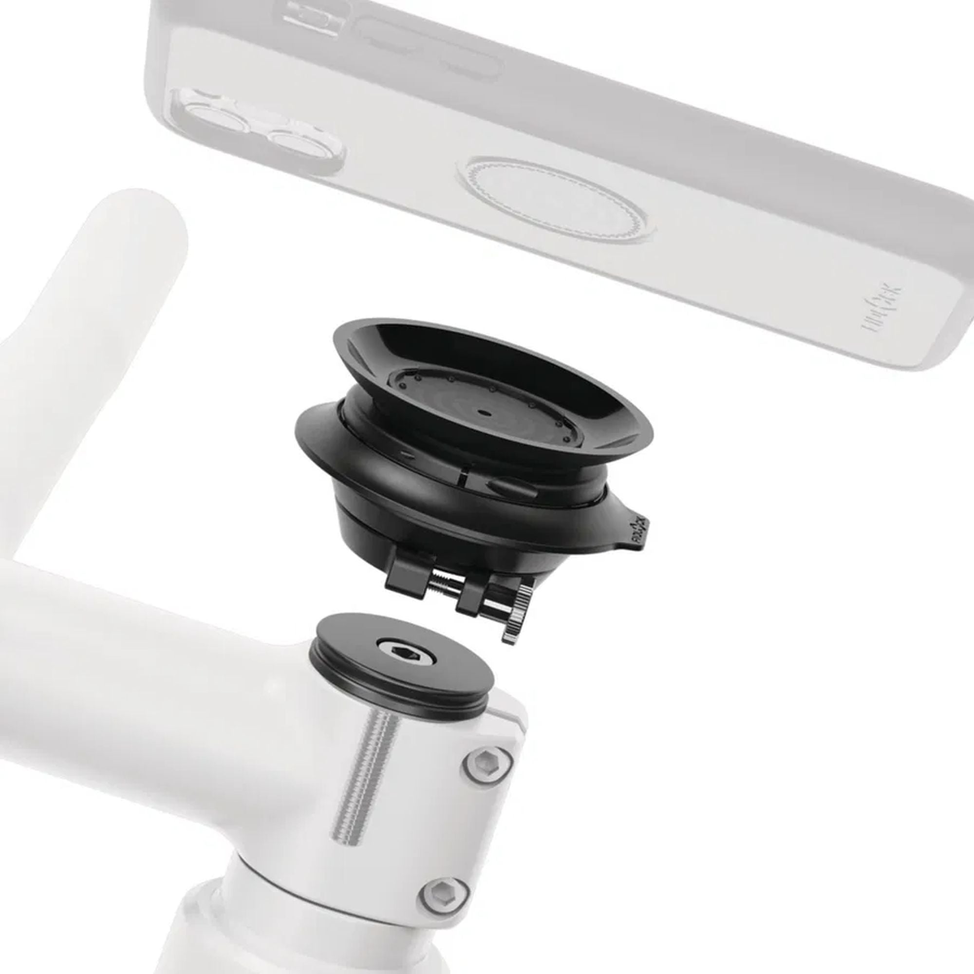 Die FIDLOCK VACUUM ahead cap base bietet sicheren Halt für dein Smartphone durch die clevere Kombination aus Magneten und Saugnapf. Sie wird direkt am Ahead-Steuersatz montiert und passt auf 1 1/8" Gabelschäfte. Perfekt für alle VACUUM phone cases – ganz ohne Beeinträchtigung der Elektronik. Inklusive Ahead-Kappe, Inbusschraube sowie Klemmschelle mit Rändel- und Inbusschraube für einfache Montage.
