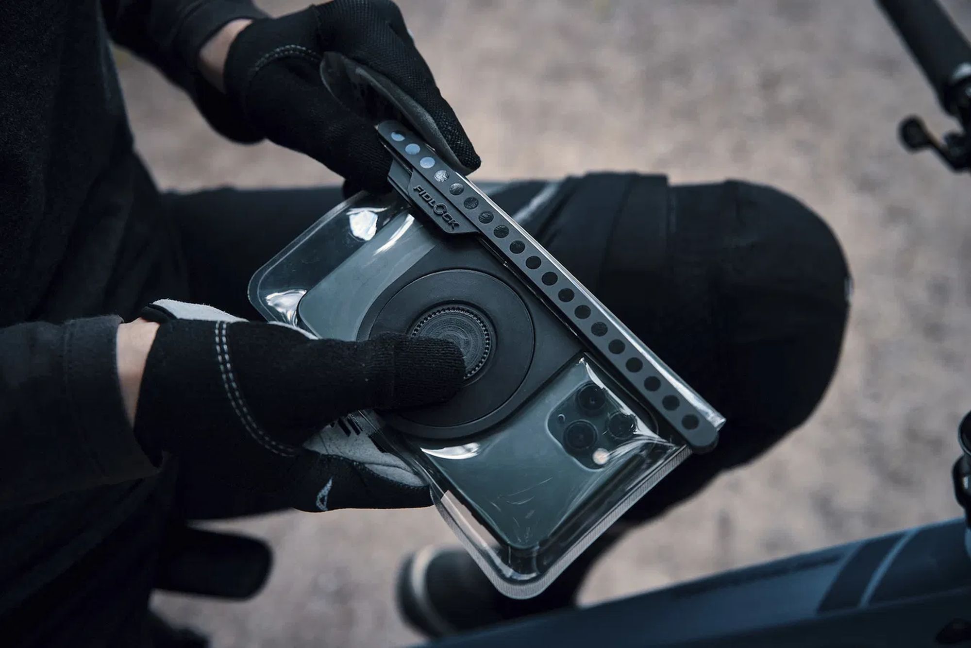 Die FIDLOCK VACUUM universal phone case ist die flexible Lösung für alle VACUUM bases. Dank Magnetkraft und Unterdruck hält dein Smartphone sicher – drehbar um 360° für Hoch- und Querformat. Die transparente Hülle ist 100 % wasser- und sanddicht, schützt zuverlässig und erlaubt volle Bedienung durch das Material. Erhältlich in Größe M (bis 6,5") und L (bis 6,9"). Elektronik bleibt unbeeinträchtigt.