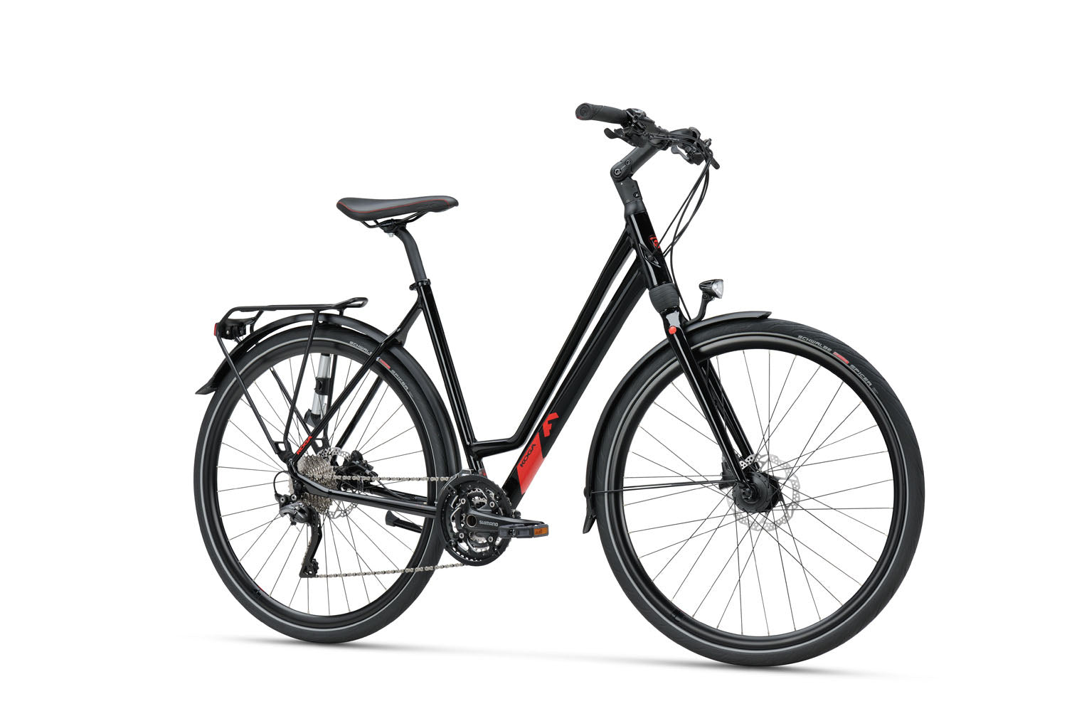 Die Schwalbe Spicer Reifen mit Pannenschutz bieten guten Grip und Zuverlässigkeit auf verschiedenen Oberflächen. Die Shimano Hydraulische Scheibenbremsen (Typ MT201) vorne und hinten sorgen für sicheres und effektives Bremsen in allen Situationen.