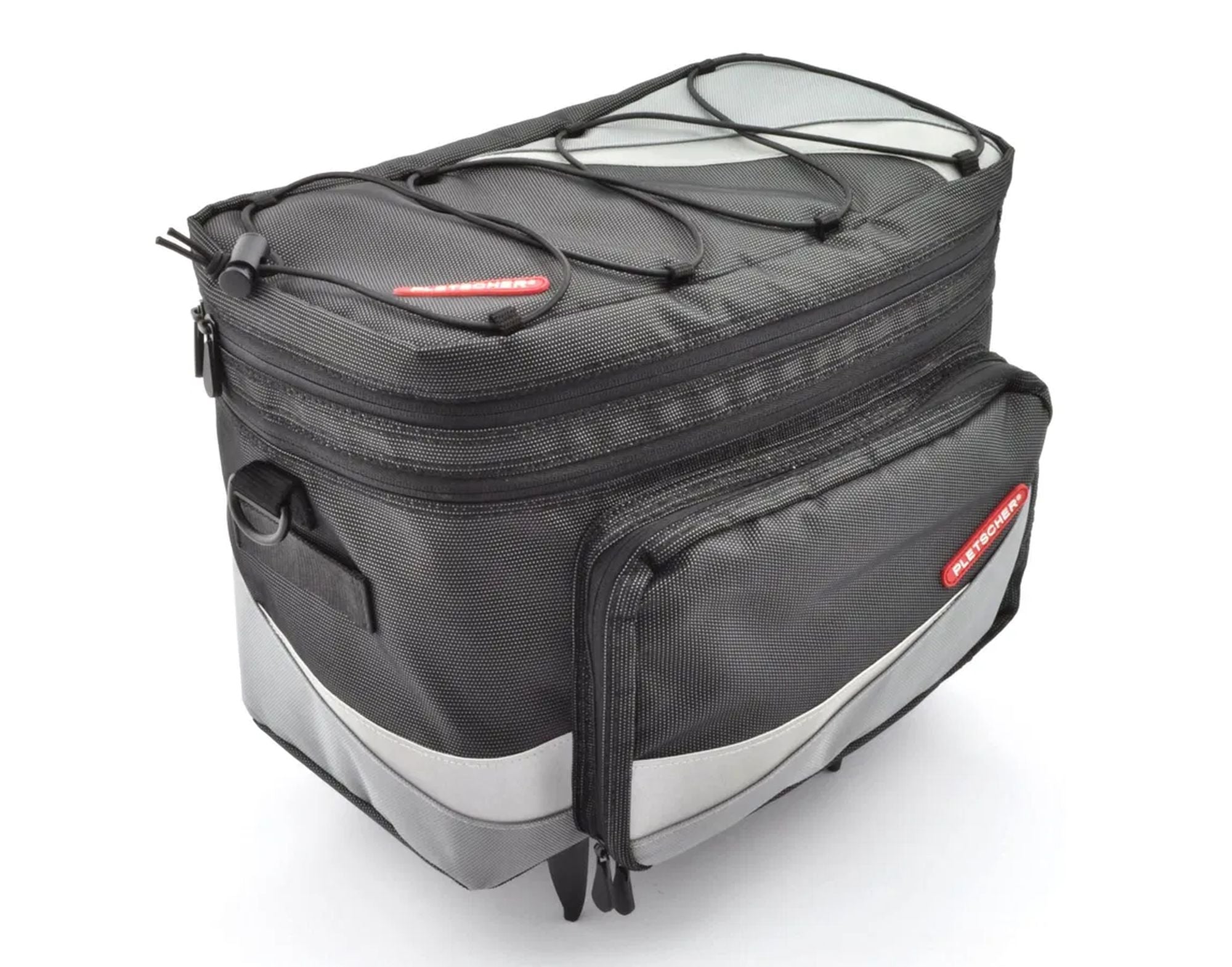 Die Pletscher Gepäckträgertasche Basilea bietet 24 l Stauraum mit einem Hauptfach, zwei abklappbaren Seitentaschen und höhenverstellbarem Volumen. Ein integrierter Tragegriff, Schulterriemen und ein strapazierfähiges Helmnetz erhöhen den Komfort. Dank EasyFix-Adapter passt die Tasche auf alle Pletscher EasyFix-Träger. Reflexstreifen sorgen für Sichtbarkeit, und die Regenhaube schützt zuverlässig vor Nässe. Ideal für Alltag und Touren.