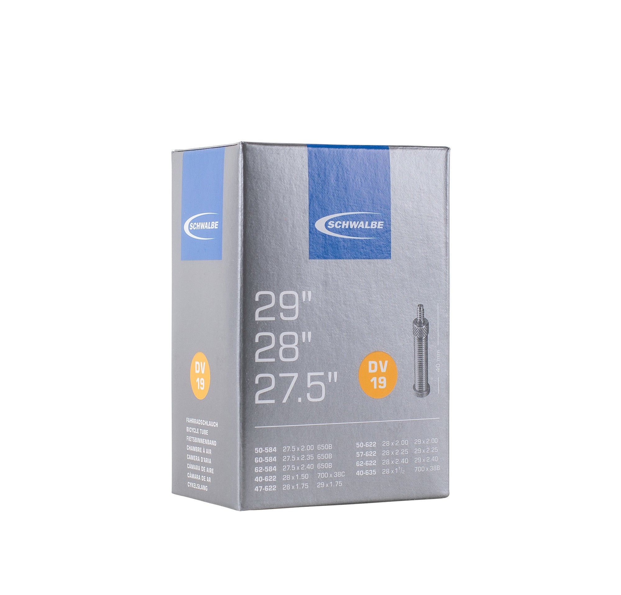Der Schwalbe Fahrradschlauch Nr. 19 passt für Reifen in 27.5", 28" und 29" (ETRTO 40/62-584/635). Er überzeugt durch überdurchschnittliche Luftdichtigkeit, gleichmäßige Wandstärke und hochwertige Materialien. Millionenfach bewährt – für zuverlässige Performance auf jedem Terrain.