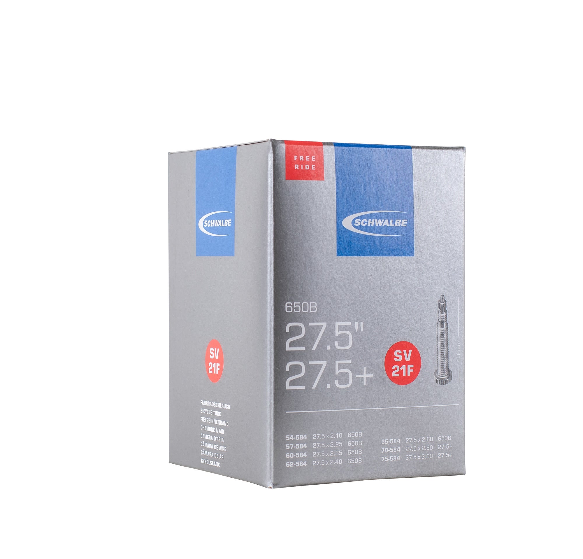 Der Schwalbe Freeride Schlauch Nr. 21F ist speziell für 27.5" Reifen (ETRTO 54/75-584) konzipiert. Er bietet großes Volumen bei gleichzeitig geringem Gewicht – perfekt für anspruchsvolle Freeride-Abenteuer. Robust, leicht und zuverlässig – ideal für alle, die auf Performance und Kontrolle setzen.