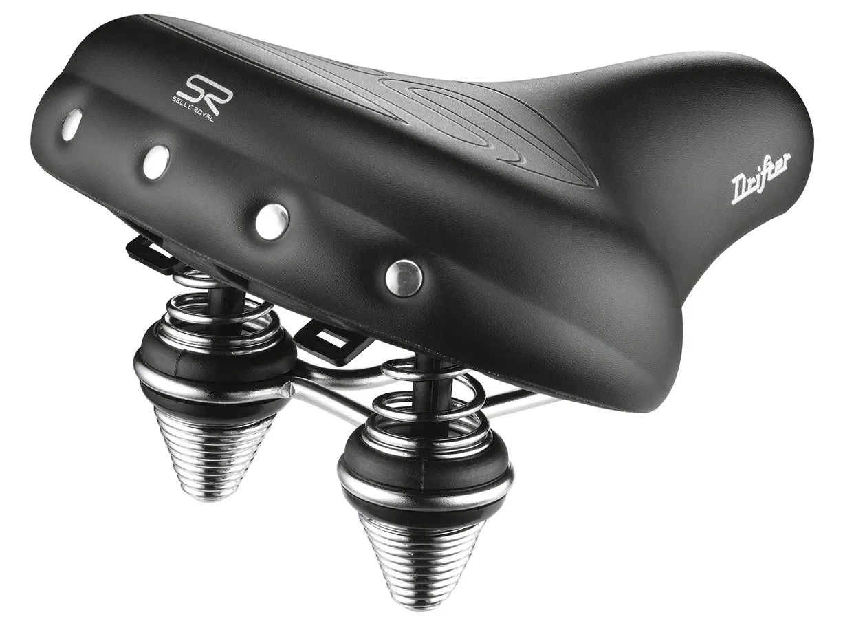 Der Selle Royal Drifter Strengtex ist ein robuster City-Sattel für entspannte Fahrten mit höchstem Komfort. Der extra weiche, extrem strapazierfähige Strengtex-Bezug und die üppige Royalgel-Polsterung sorgen für angenehmes Sitzen. Verchromte Zug- und Druckfedern dämpfen Unebenheiten, die RVL-Technologie macht den Sattel absolut wasserdicht. Dank Spezialschaum ist er 20 % leichter. Maße: 270 x 245 mm, Unisex-Design in Schwarz – ideal für den täglichen Einsatz in relaxter Sitzposition.