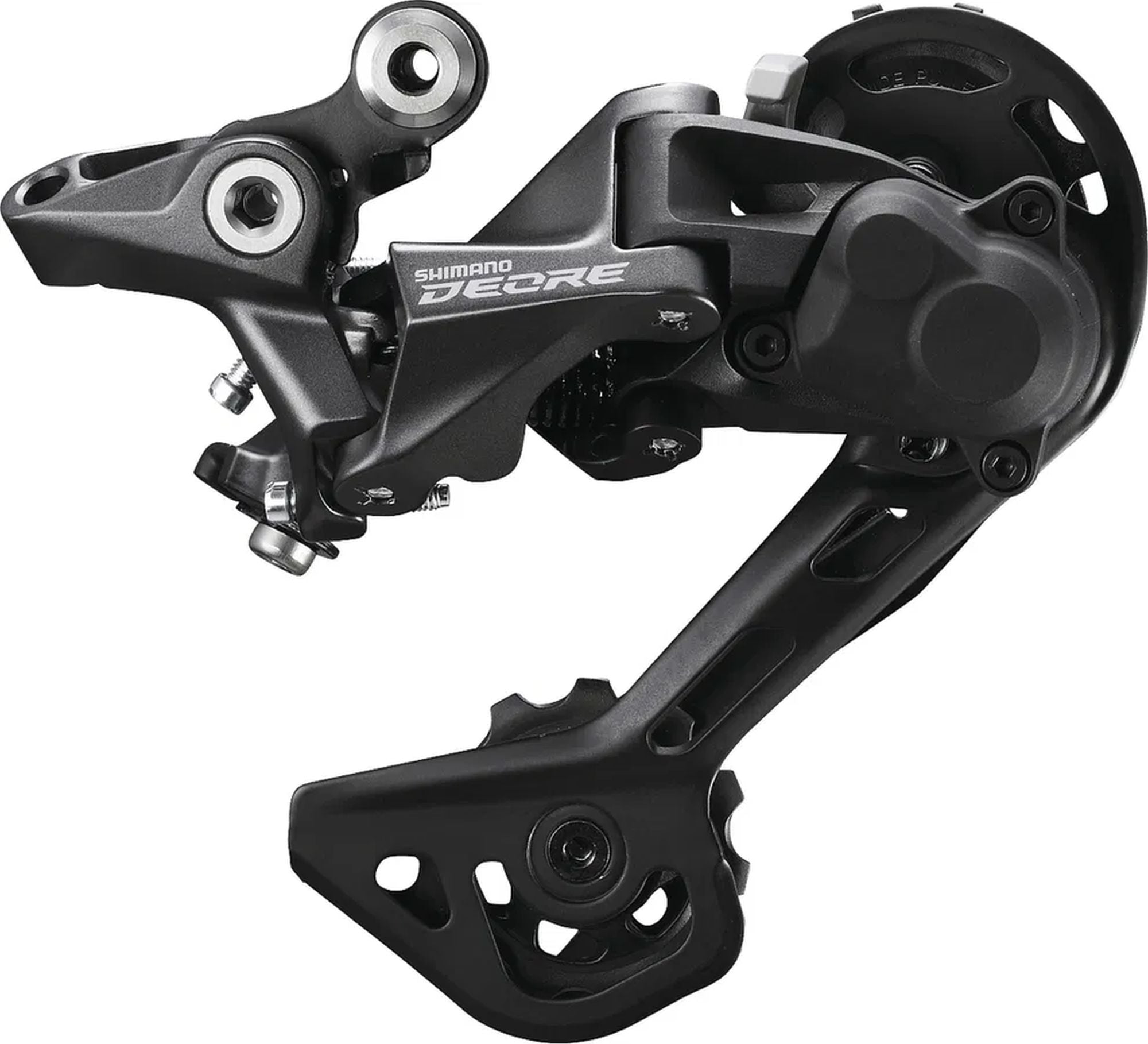 Das Shimano Deore Schaltwerk RD-M5120 SGS ist ein robustes MTB-Schaltwerk mit Shimano Shadow Plus Design. Die integrierte Dämpfungstechnologie reduziert Kettenschlagen und verhindert effektiv Kettenabwürfe. Das flache Profil eignet sich ideal für anspruchsvolles Gelände. DYNA-SYS-kompatibel, mit fluorbeschichteten Gelenkbuchsen für langlebige Performance. Geeignet für 1x10-fach (bis 46 Zähne) sowie 2x10- und 2x11-fach Antriebe (bis 42 Zähne). Langer SGS-Käfig, Gesamtkapazität 41 Zähne.