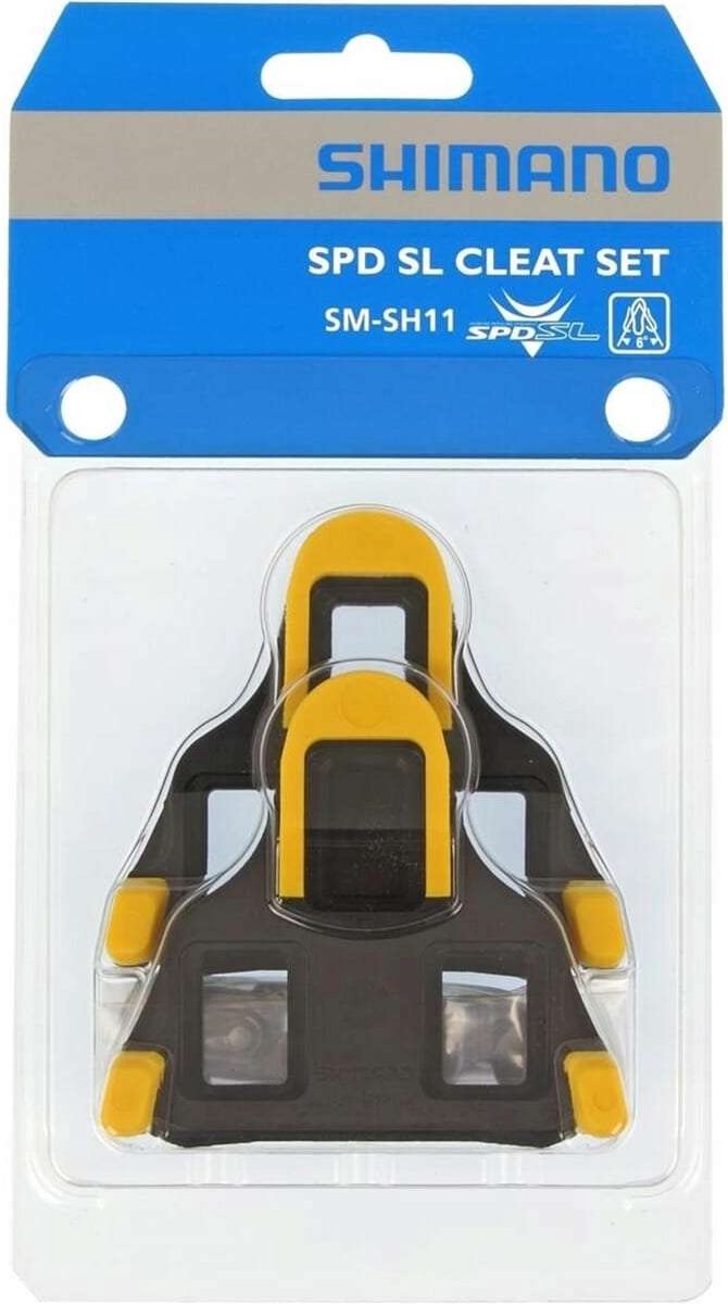 Die Shimano SM-SH11 SPD-SL Schuhplatten bieten optimalen Halt und eine seitliche Bewegungsfreiheit von 6°, ideal für komfortbewusste Rennradfahrer. Speziell für das SPD-SL Pedalsystem entwickelt, gewährleisten sie eine sichere Verbindung und effiziente Kraftübertragung. Die Cleats sind mit allen 3-Loch-Radschuhen kompatibel und einfach zu montieren. Perfekt abgestimmt auf SPD-SL Pedale, sind sie die bewährte Wahl für Training und Wettkampf. Zuverlässig, langlebig und präzise gefertigt für höchste Performance auf der Straße.
