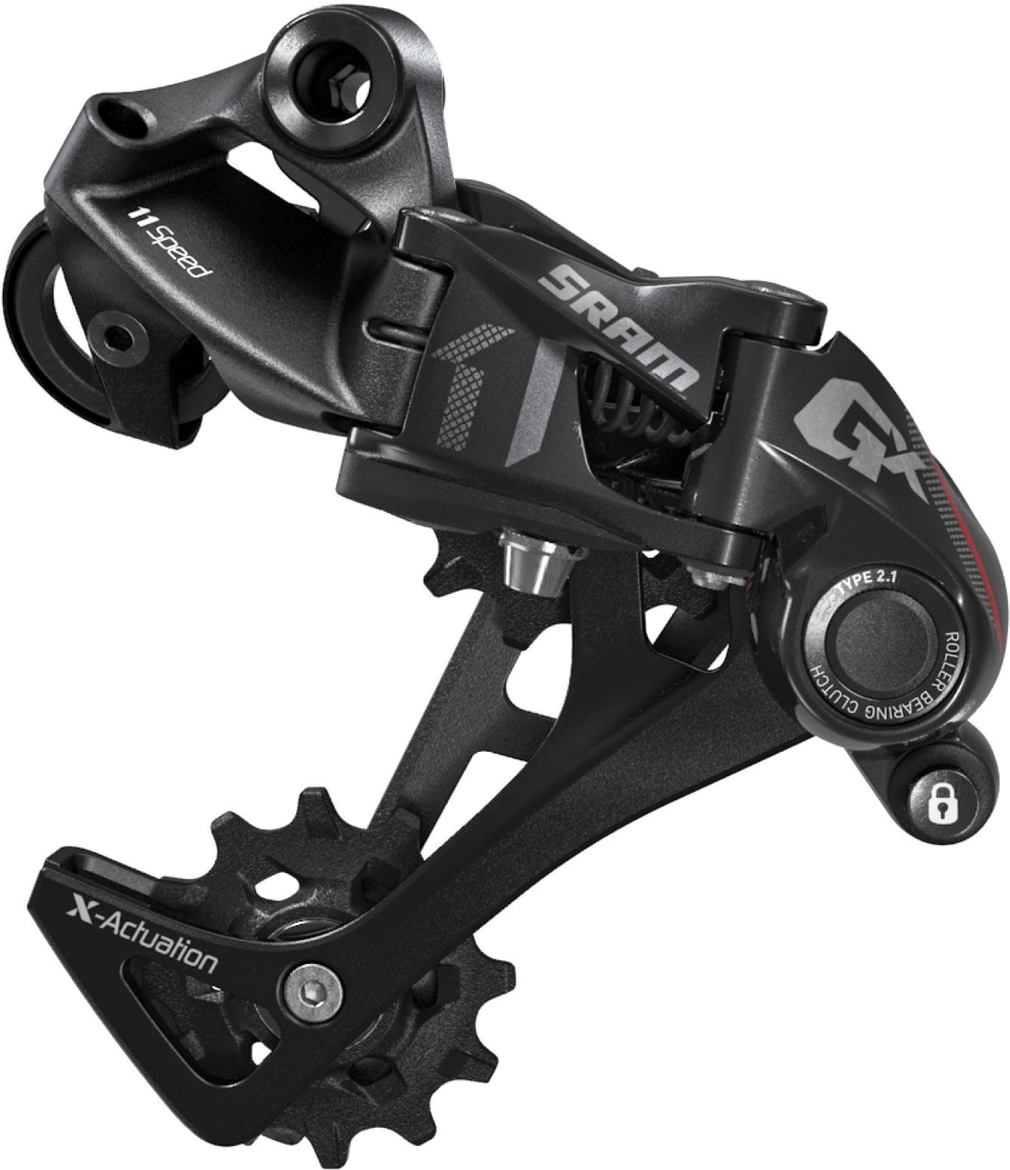 Das SRAM GX1 Schaltwerk ist für den harten MTB-Einsatz konzipiert und überzeugt durch präzise, zuverlässige Schaltperformance. Mit langem Käfig und 11-fach Systemkompatibilität eignet es sich ideal für moderne 1-fach Antriebe. Technologien wie X-Horizon sorgen für konstante Kettenführung, während Roller Bearing Clutch und Cage Lock Kettenschlagen reduzieren und den Laufradwechsel erleichtern. Die mechanische Direktmontage gewährleistet hohe Stabilität. In markantem Rot-Schwarz gehalten, ist das GX1 Schaltwerk die perfekte Wahl für ambitionierte Mountainbiker.