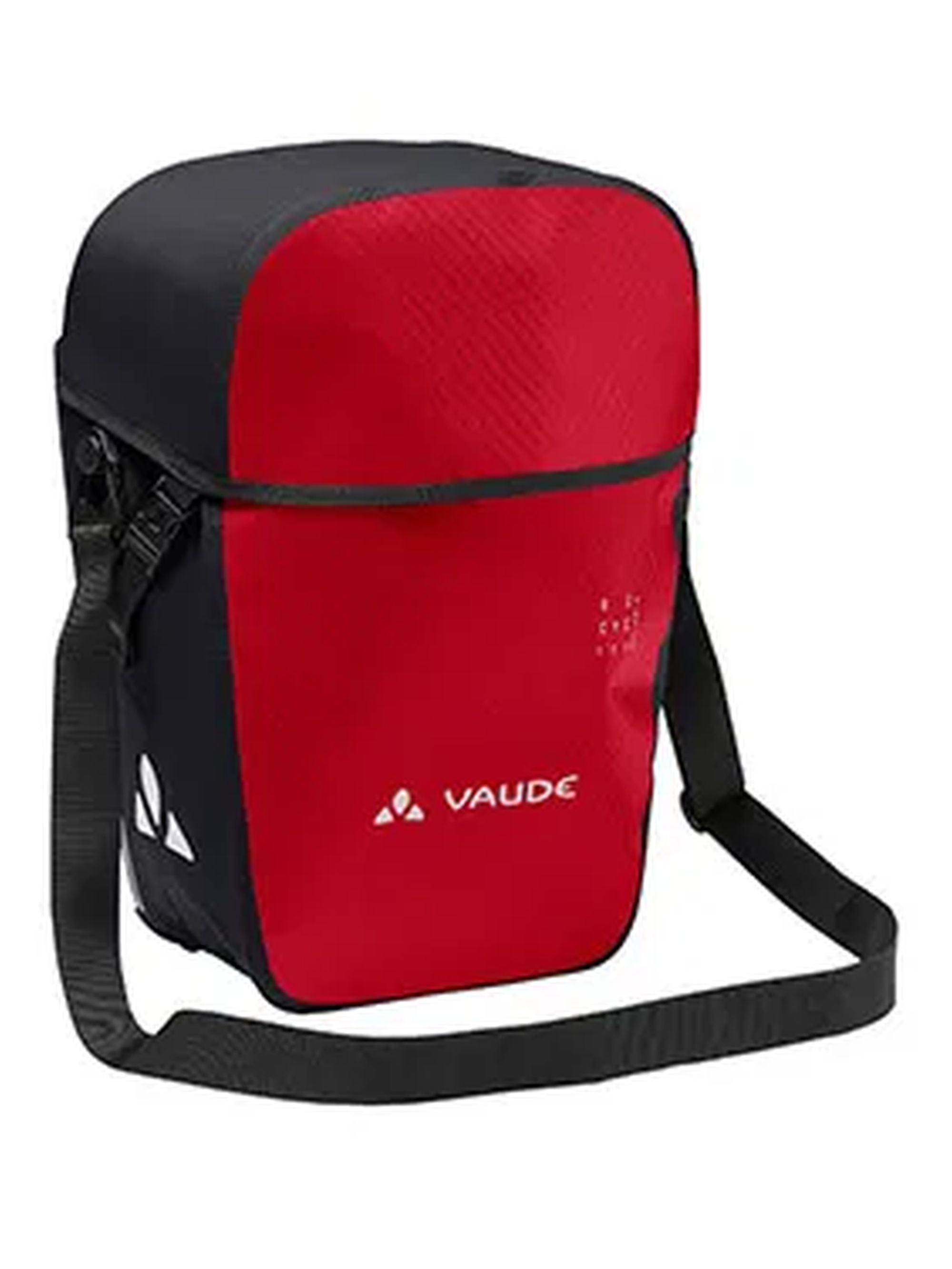 Die Vaude Aqua Back Pro ist eine robuste, klimaneutral in Deutschland hergestellte Doppeltasche aus PVC-freiem, wasserdicht verschweißtem Material. Mit 48 L Volumen, übersichtlichem Hauptfach und Deckelverschluss mit Staubbalg bietet sie viel Platz für Gepäck. Das QMR 2.0 Befestigungssystem ist leicht einstellbar und abschließbar (ABUS Schloss 145/20 separat erhältlich). Ein abnehmbarer Schultergurt sowie Reflexlogos sorgen für Komfort und Sicherheit im Alltag und auf Tour.