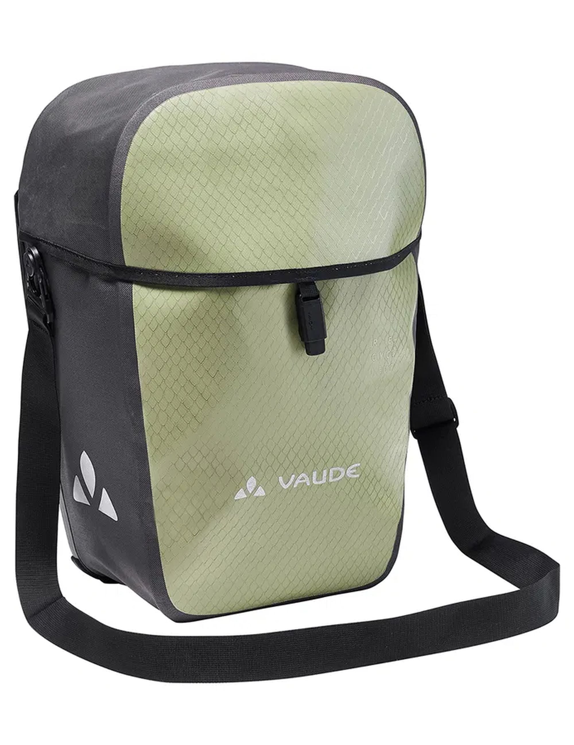 Die Vaude Aqua Commute Single ist eine wasserdicht verschweißte Hinterradtasche für umweltbewusste Pendler. Sie bietet ein gepolstertes Notebookfach für 13,3" Laptops, ein übersichtliches Hauptfach sowie einen praktischen Deckelverschluss mit Staubbalg. Dank ihrer formstabilen, standfesten Bauweise bleibt sie auch im Alltag verlässlich. Der abnehmbare Schultergurt sorgt für flexiblen Transport. Mit reflektierendem Logo und dem leicht einstellbaren, abschließbaren QMR 2.0-Befestigungssystem – klimaneutral in Deutschland hergestellt.