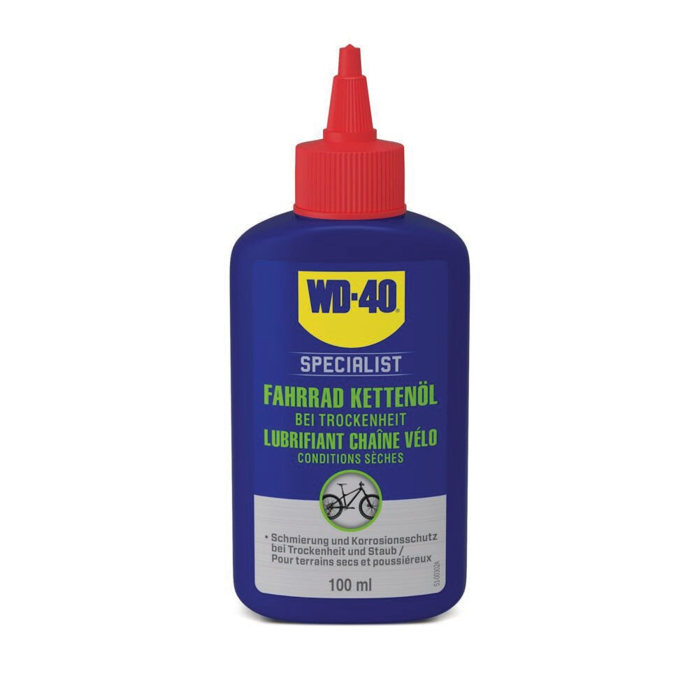 Das WD-40 Specialist Fahrrad Kettenöl ist optimal für Sommer- und Trockenbedingungen. Es dringt tief ein und bildet einen langanhaltenden Schutzfilm, der exzellente Schmierung bietet und Staubansammlungen verhindert.